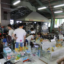 サハラガラスパークでは10万点を超えるガラスを世界からとりよせて展示販売しています。 また工房では「宙吹きガラス」「ハンドグラビール」「トンボ玉」の技法を使った。 有料でオリジナルガラス制作を体験することができます |